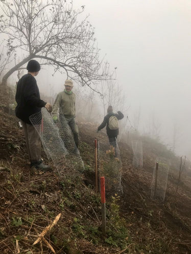 To maximize efficiency, we divided into groups. Around a hundred seedlings were planted; some were placed permanently, while others were set in an "open-air nursery" for future planting. One group also carried out maintenance and safety work on the paths.